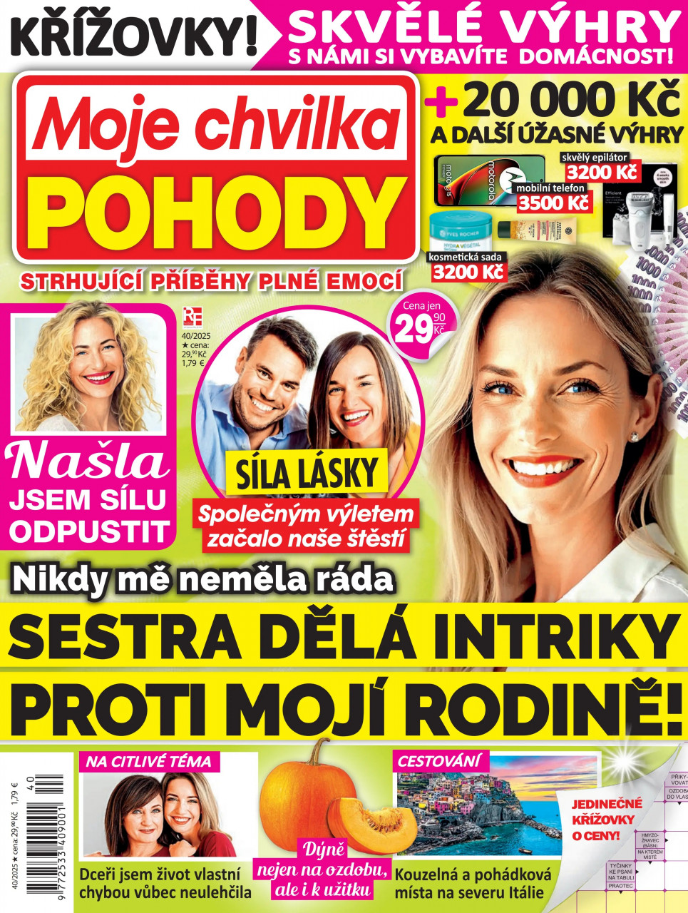 Časopis Moje chvilka pohody spolehlivě zabaví také díky rubrikám o cestování, záhadách nebo dramatických osudech žen. Milovnice křížovek zase čeká spousta luštění o velmi lákavé výhry.